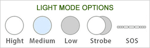 The S.O.S. is the international Morse code rescue signal and can be used as a life-saving signal in case of an emergency. When the S.O.S light mode is activated the light beam flashes fast three times, slowly three times and then quickly three times. The light flashing frequency is standard and the S.O.S light mode repeats itself when the light cycle completes.